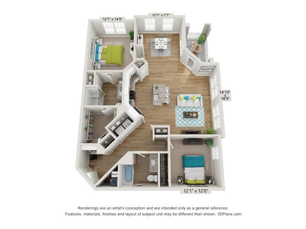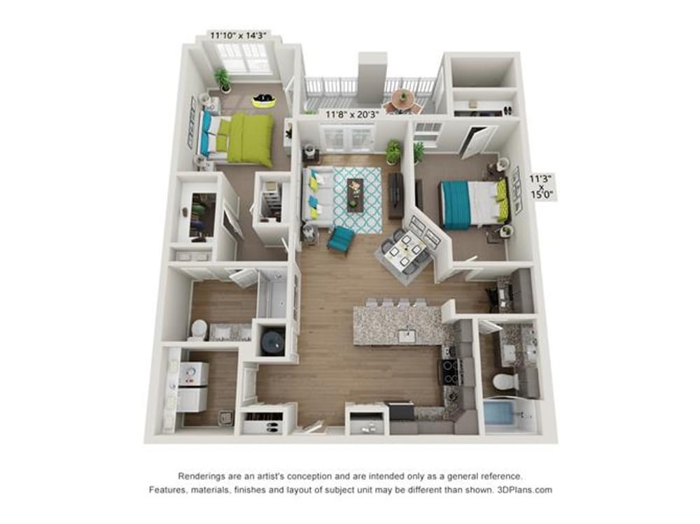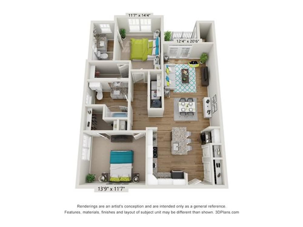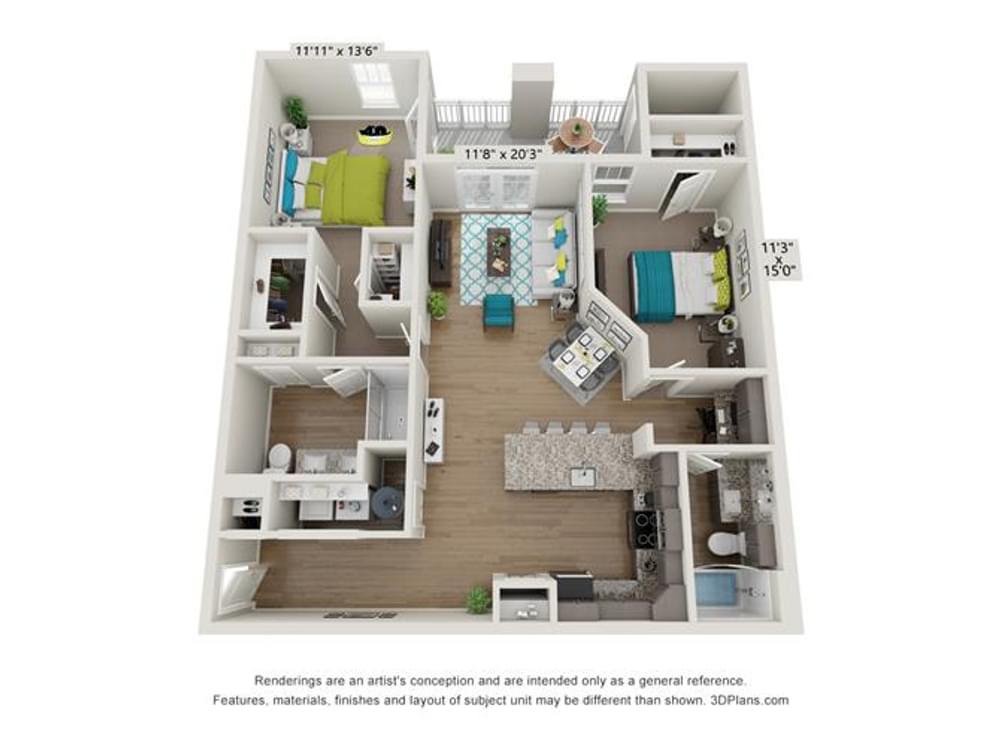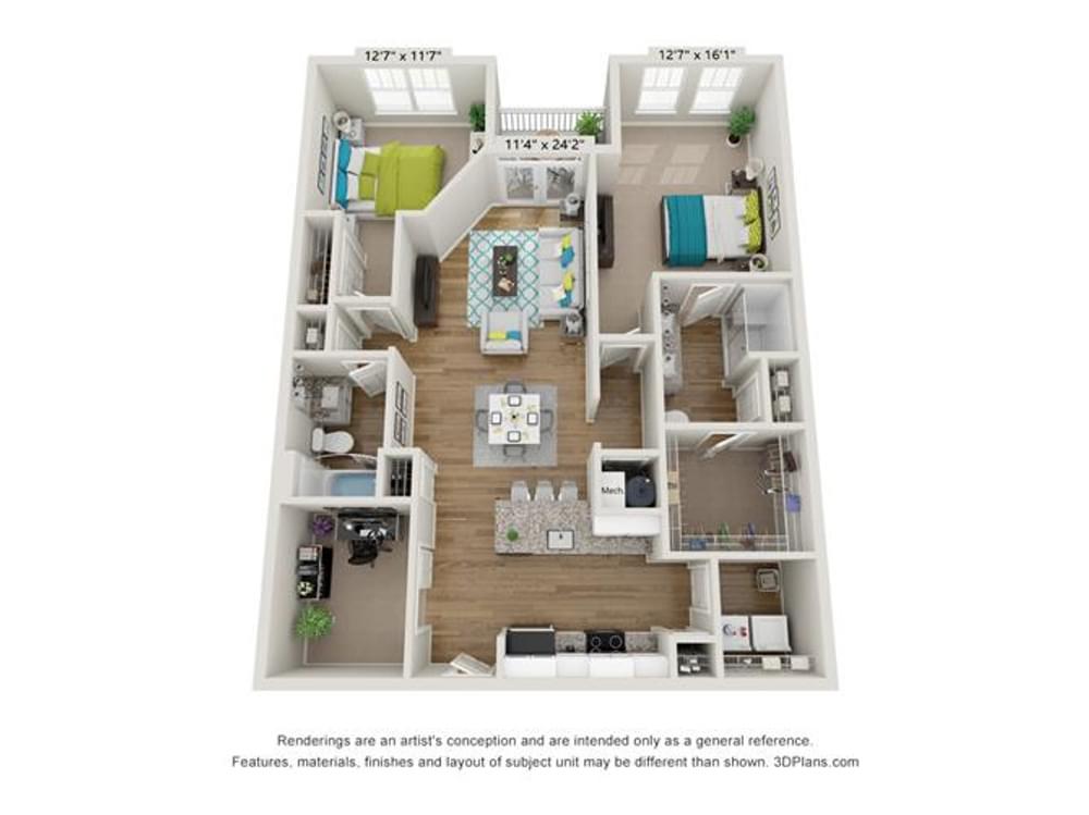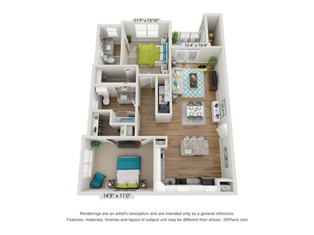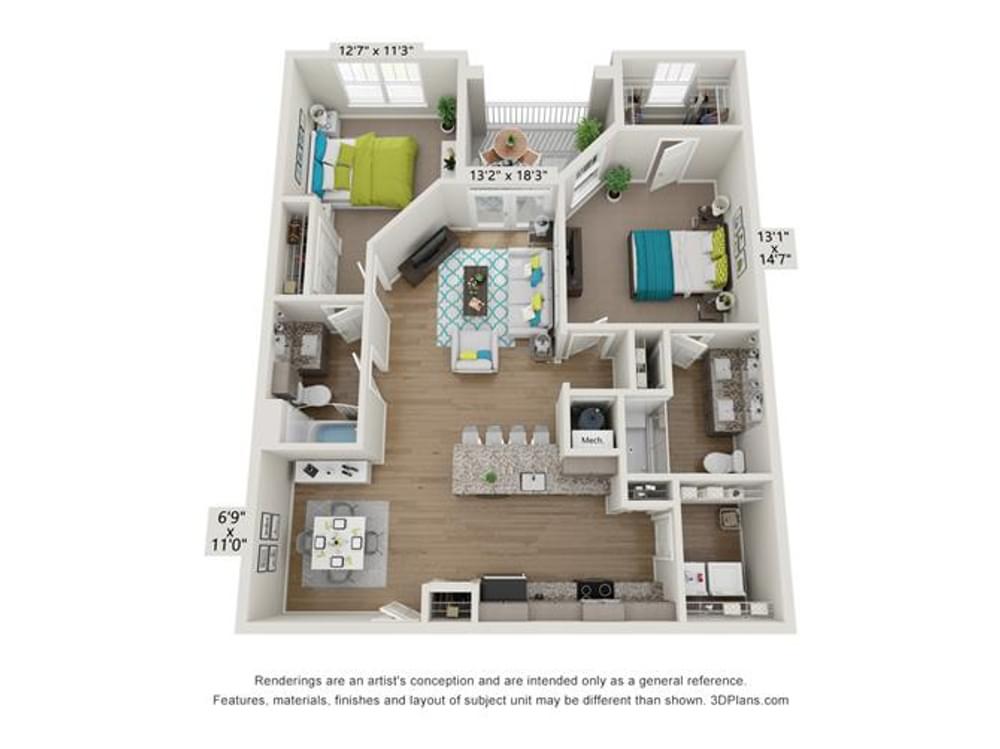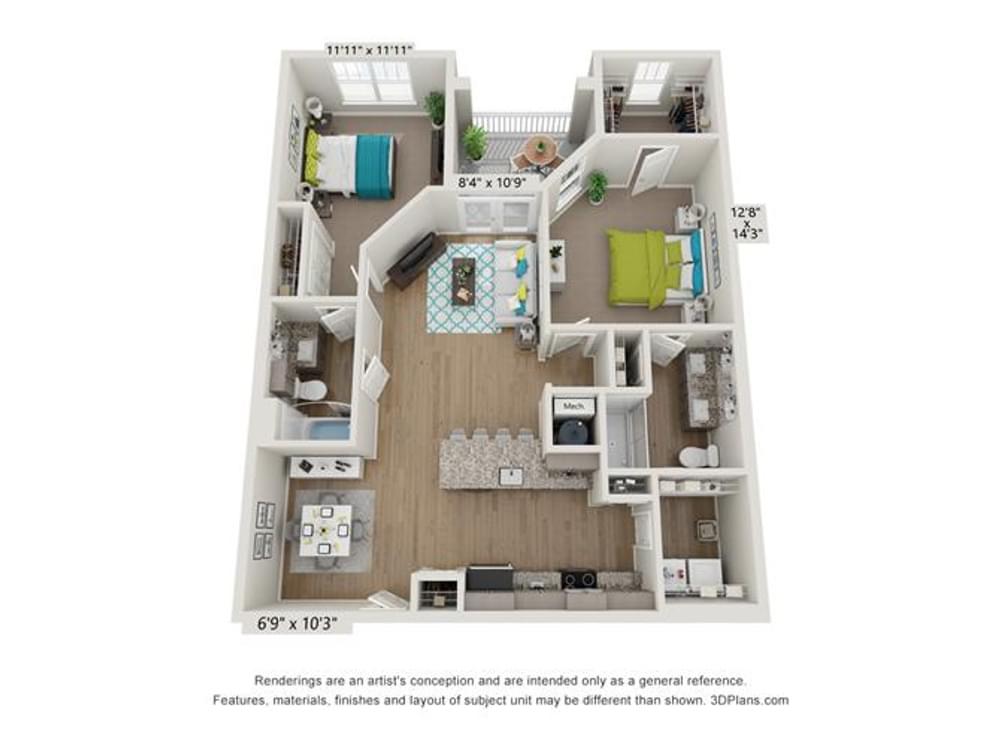 Unit Type2 Bed / 2 BathFloor Area1,293 sq. ft.AvailableTodayStarting at$1,589 / mo